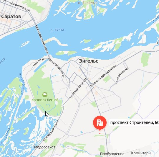 Карта. Откройте адрес «проспект Строителей, 60А, Энгельс» в Яндекс.Картах и сохраните точку с указанными GPS-координатами (51.449243, 46.137841) для быстрого навигационного доступа. Яндекс