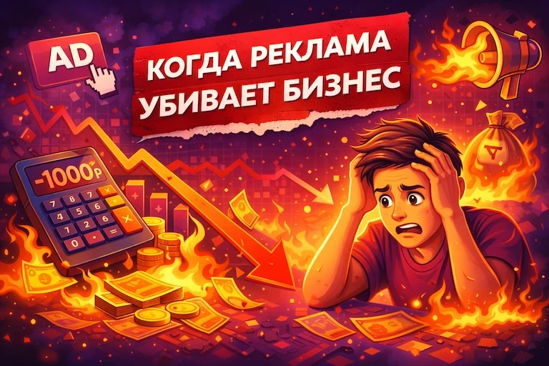 Реклама ускоряет то, что уже заложено в вашей модели. Если на заказе остается мало денег, реклама превращает микроскопический плюс в ноль. Если на заказе минус, реклама просто помогает быстрее потратить оборотку.