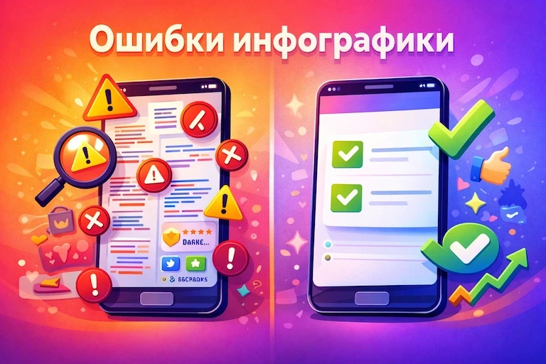 Ошибки инфографики карточек: что снижает конверсию, провоцирует возвраты и портит доверие. Разбор причин, примеры и таблица исправлений.