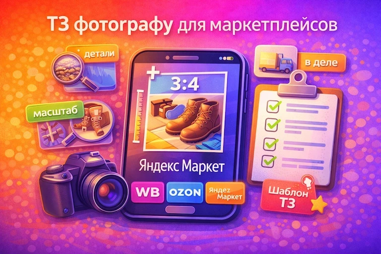 Пошагово: как написать ТЗ фотографу для маркетплейсов, получить продающие кадры, снизить возвраты и быстрее окупить рекламу. Плюс шаблон и FAQ.