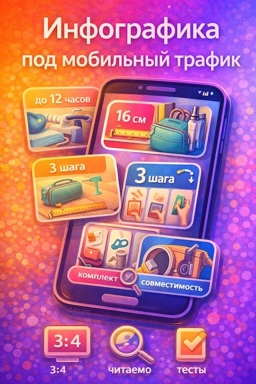 Как сделать инфографику, которая читается с телефона: безопасные зоны 3:4, крупные тезисы, контраст, сценарий слайдов, тесты и чек-лист.