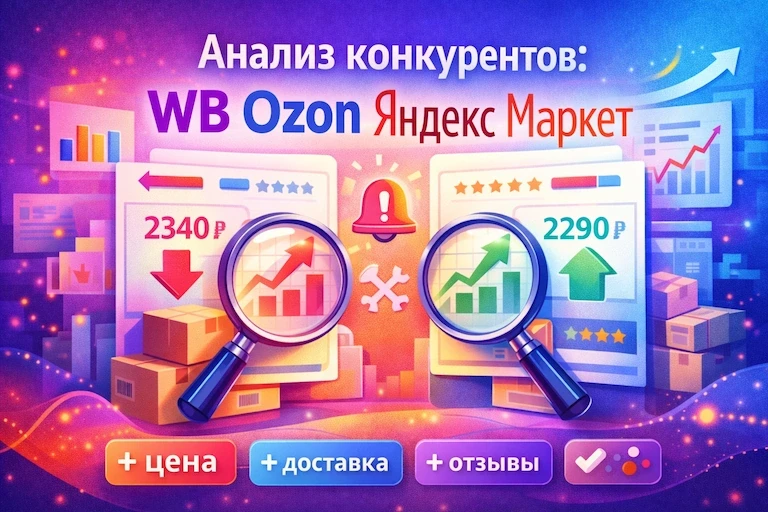 Продажи на маркетплейсе редко падают просто так. Обычно кто-то рядом стал понятнее, быстрее или выгоднее в глазах покупателя. Селлер в этот момент делает типичную ошибку: снижает цену и включает рекламу. Деньги уходят, причина остается. Ниже - рабочая схема конкурентного анализа для WB, Ozon и Яндекс Маркета: где смотреть, что сравнивать, какие сигналы считать тревогой и как улучшать предложение без скидочной гонки.