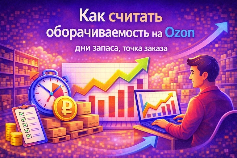 Как посчитать оборачиваемость на Ozon: формулы, учет возвратов и складов, точка заказа и страховой запас. Примеры и чек-лист.