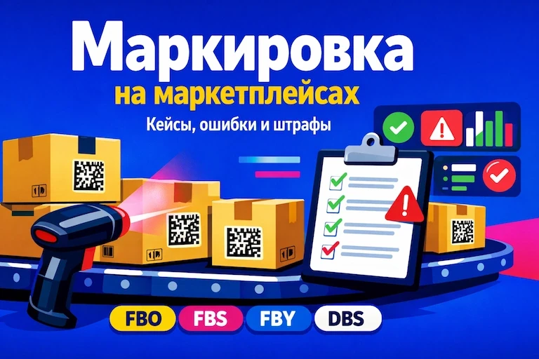 Как настроить маркировку на маркетплейсах без блокировок и штрафов. Разобраны FBO, FBS, FBY и DBS, реальные кейсы с цифрами, возвраты и перемаркировка, контрольные точки и финальный чек-лист.