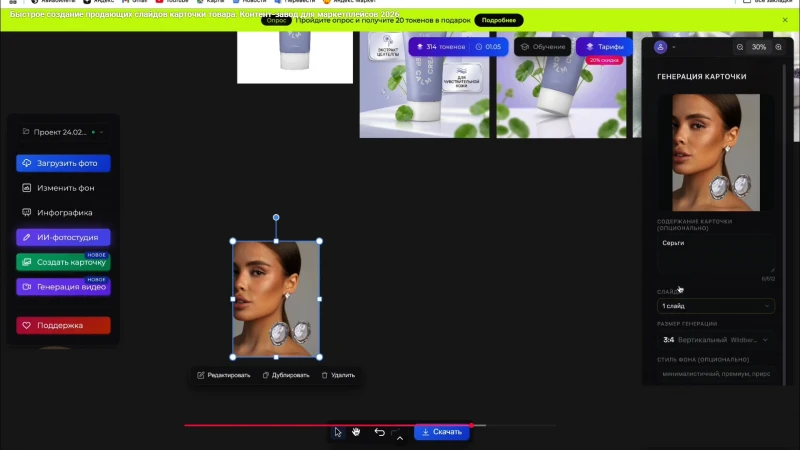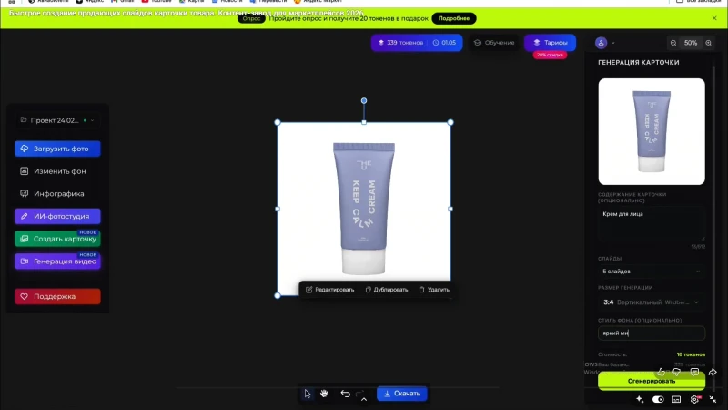 ИИ для карточек маркетплейсов: как за одну генерацию создать серию фото и слайдов в Neiro-card