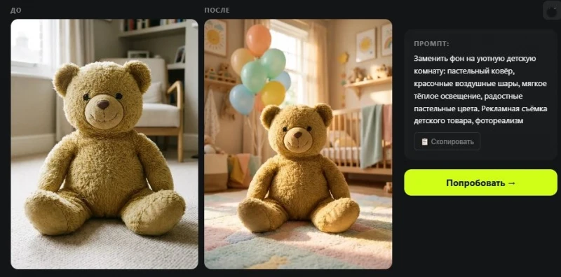 Для таких задач многие селлеры и дизайнеры используют AI-инструменты. Например,