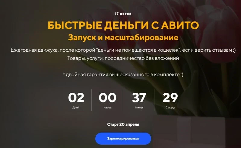Регистрация: Зарегистрироваться на курс «Быстрые деньги с Авито»