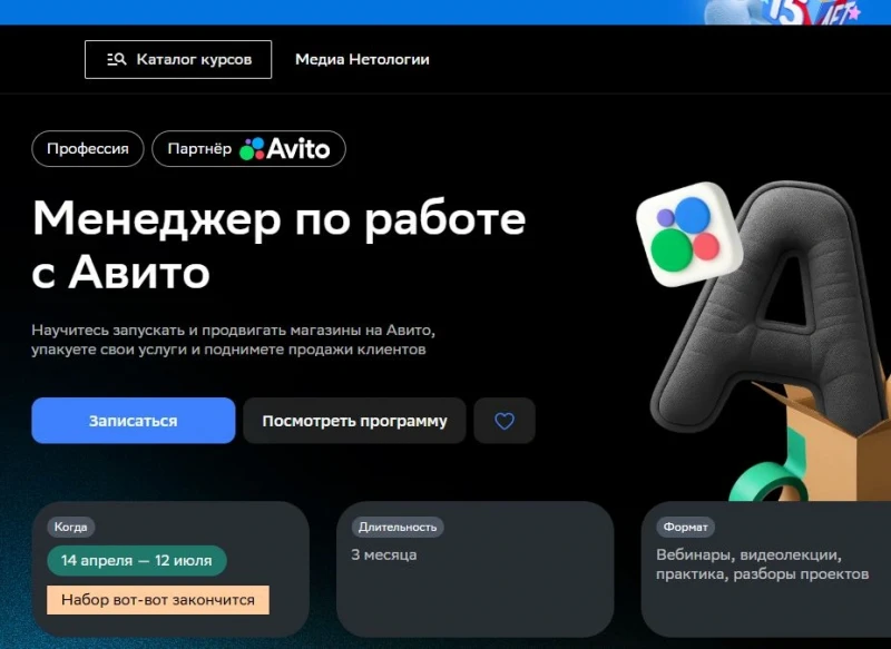 Рекомендация: Нетология («Менеджер по работе с Авито») или Skillbox («Навык продвижения на Авито»).